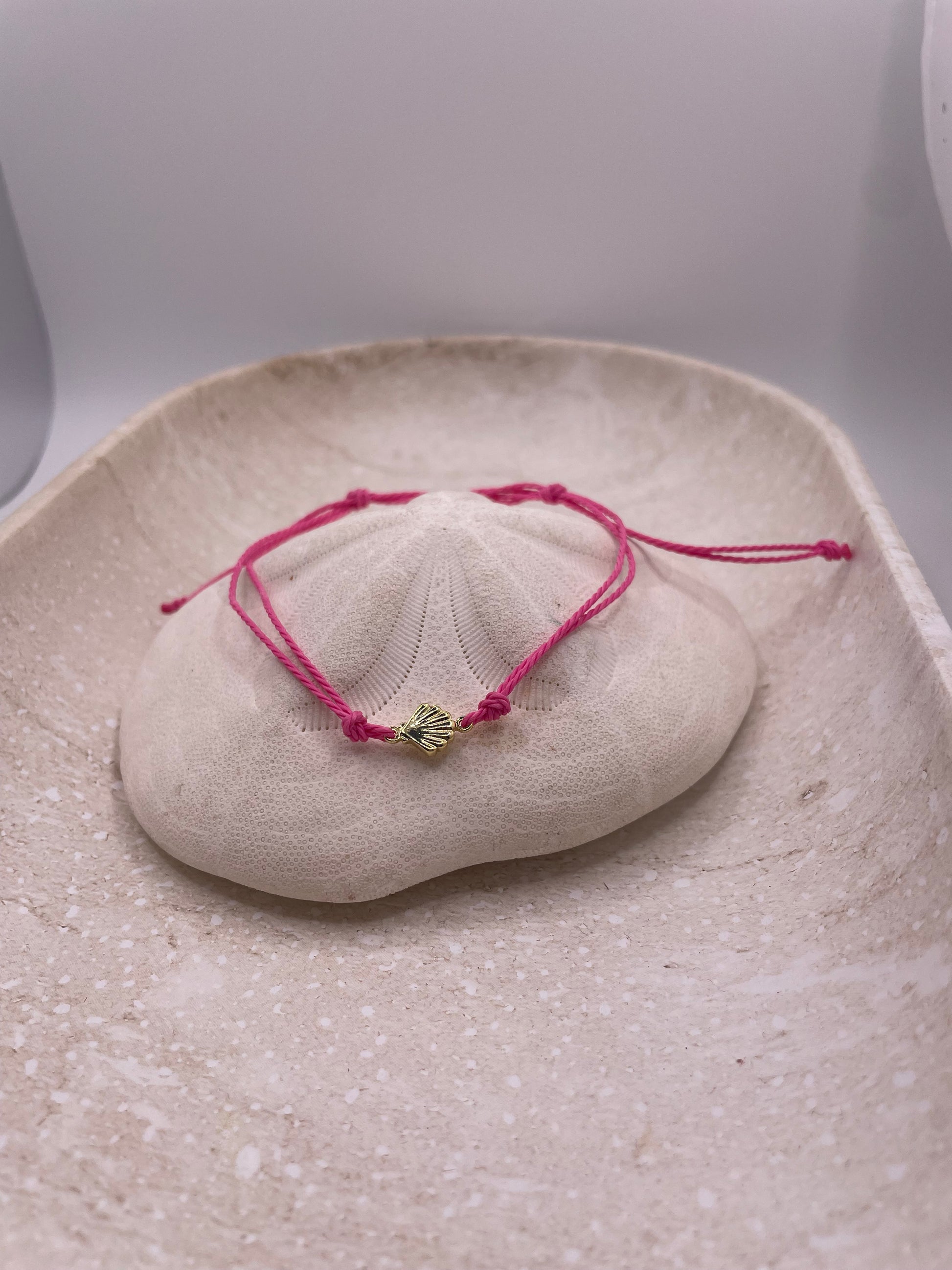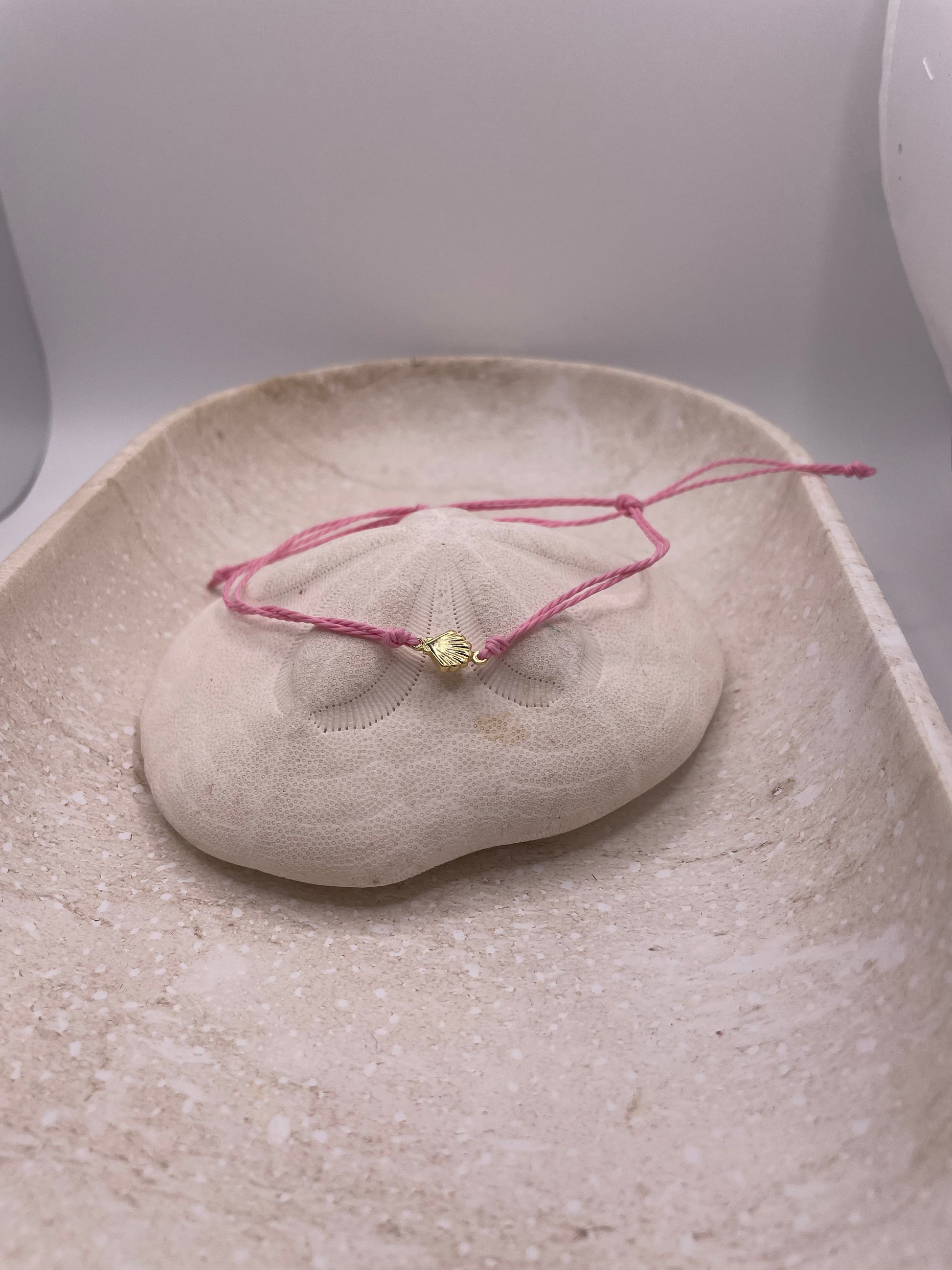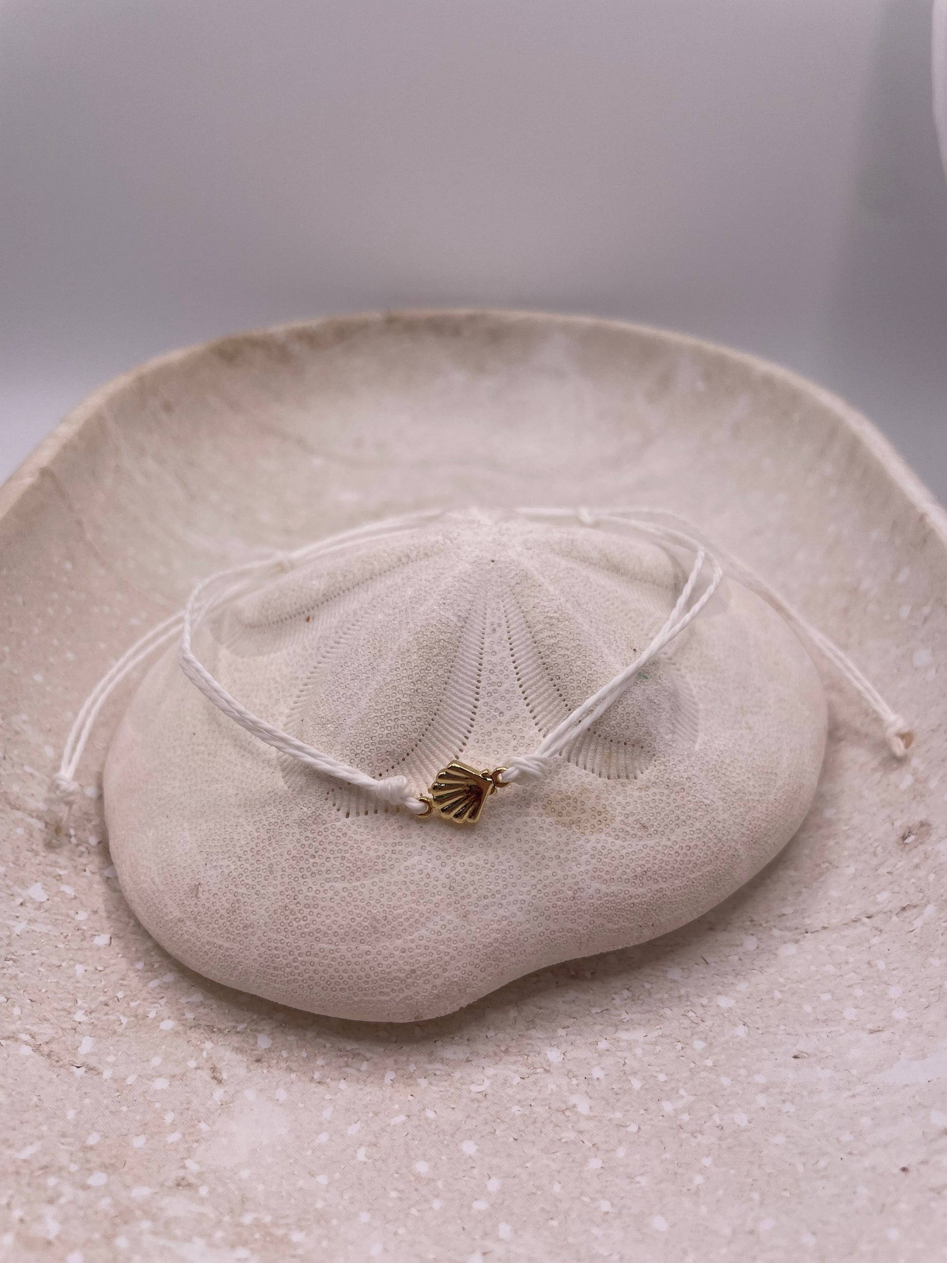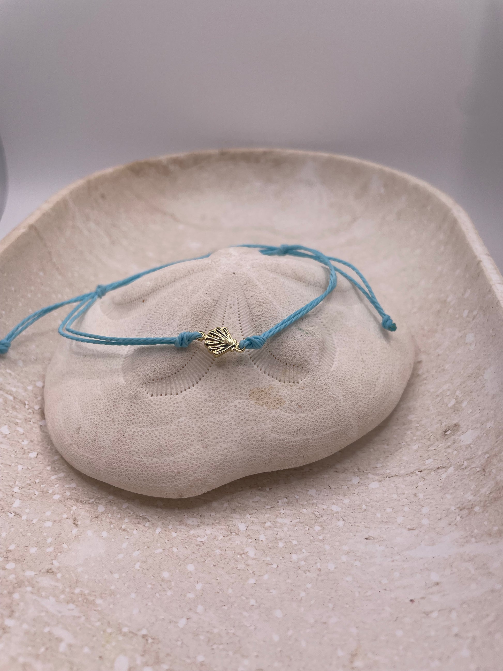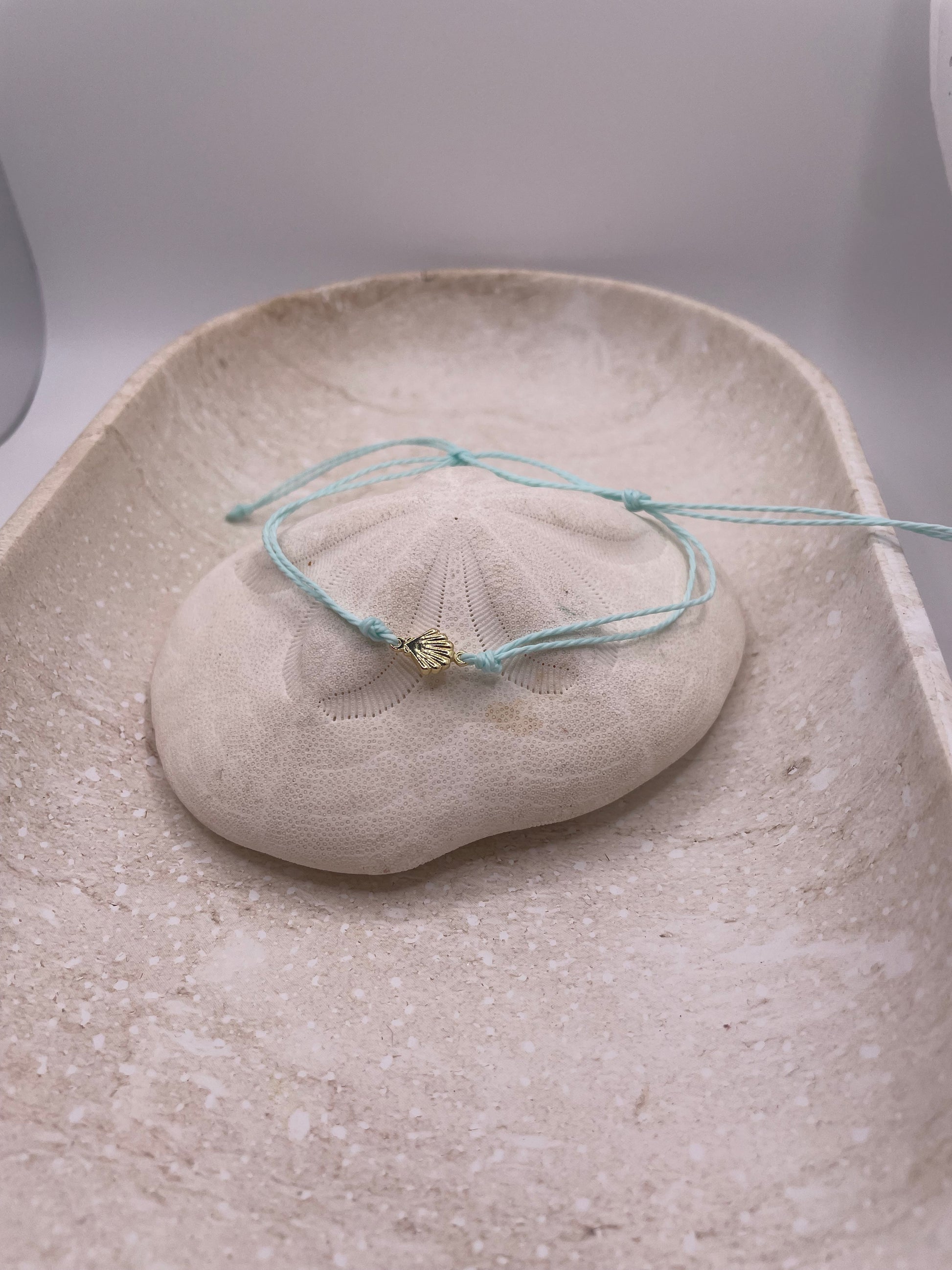 Adjustable string bracelet w/ 14k gold plated shell charm